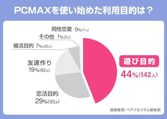 PCMAXの利用目的は44%が遊び目的